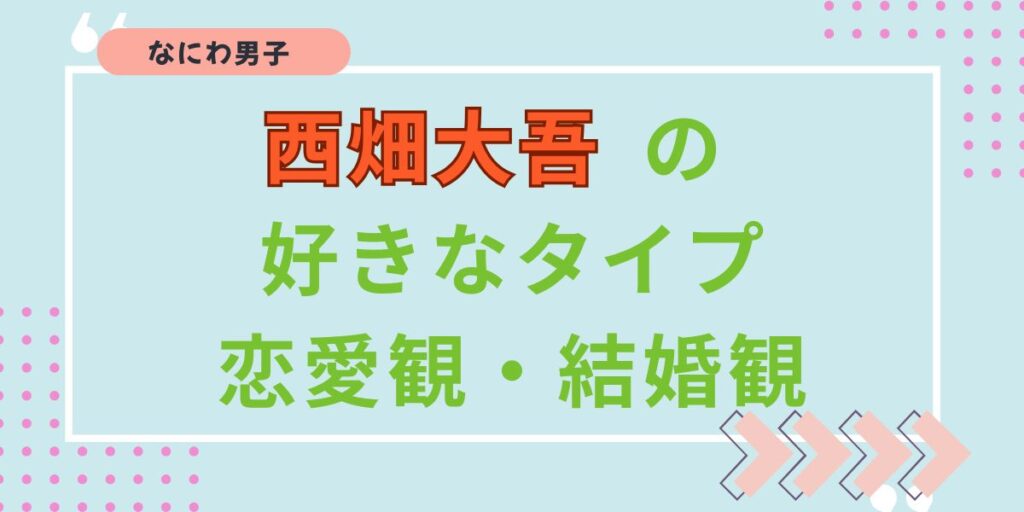 【2025】西畑大吾の好きなタイプや恋愛観!超甘々な関係♡が理想!