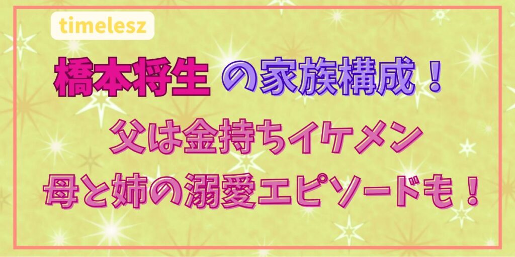 【最新】橋本将生の家族構成!母や姉との溺愛エピに感涙!父はイケメン金持ち!
