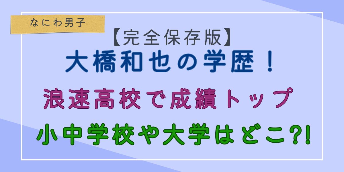 (本ページにはプロモーションを含みます。) なにわ男子のリーダーとして活躍する大橋和也さん。 明るく親しみやすいイメージが強い一方で 実は進学校に通い、理系科目が得意で学年トップの成績を取ったことも。 さらに「信州大学に進学していた?」とい... -