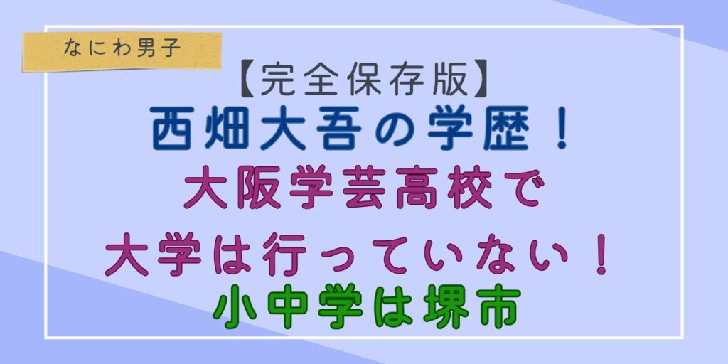 【2026】西畑大吾の学歴は大阪学芸高校で大学行ってない!小中学は堺市!