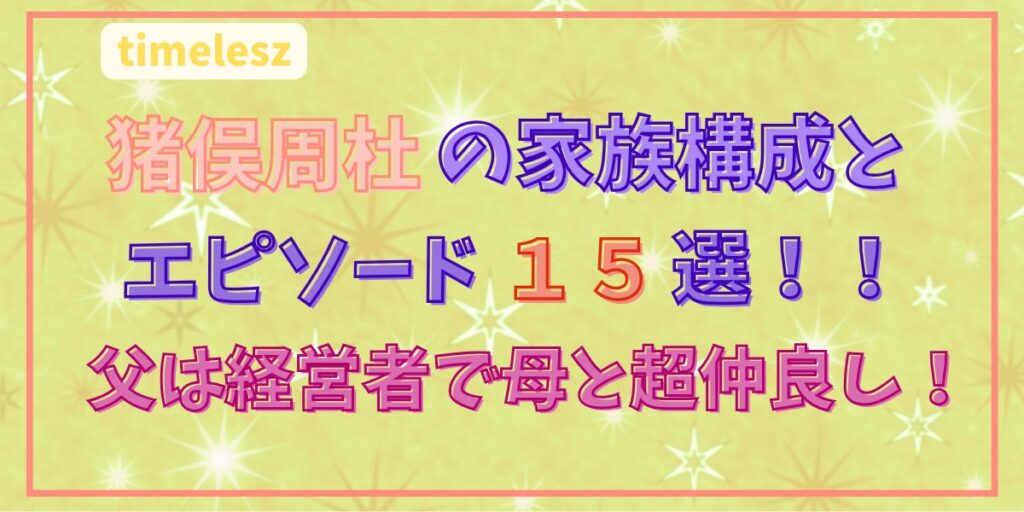 今大注目のtimeleszメンバー・猪俣周杜さん。 ひよこ組(新メンバーの若手、篠塚さん・猪俣さん・橋本さん)の中でも整った可愛いルックスとふわふわとした雰囲気で人気を集めていますが 家族との関係もとても温かいんですよね。 猪俣さんの家族は父・母・猪... -